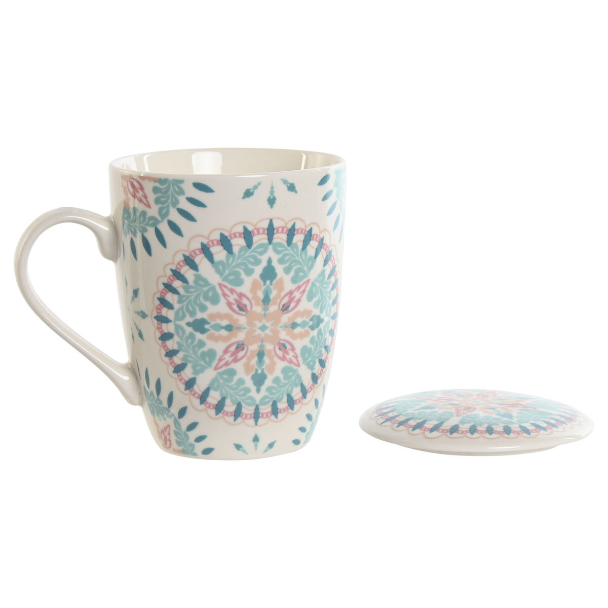Cup with Tea Filter Home ESPRIT Blue White Turquoise Mediterranean 340 ml (2 Units)