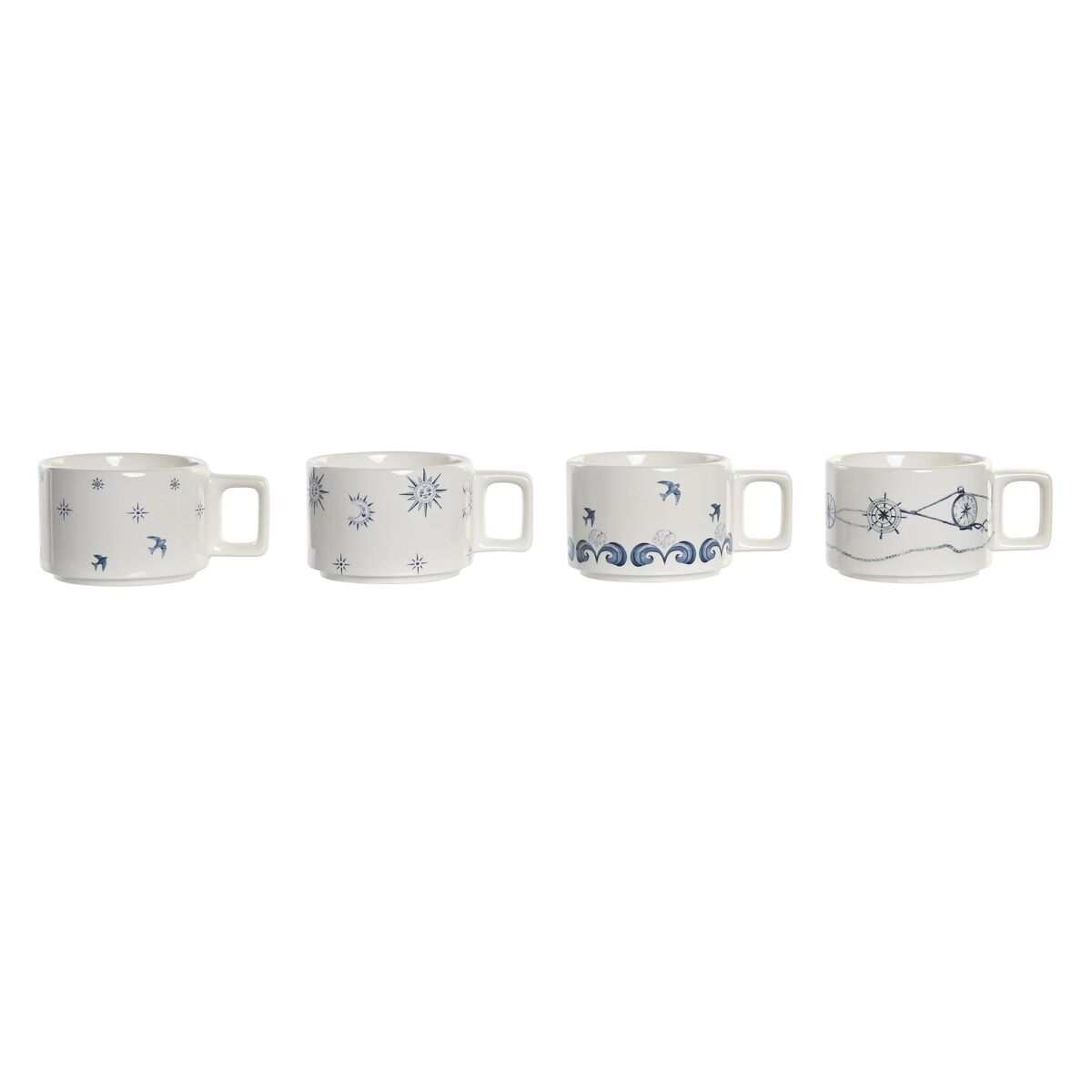 Piece Coffee Cup Set DKD Home Decor Blue White Metal Dolomite 260 ml
