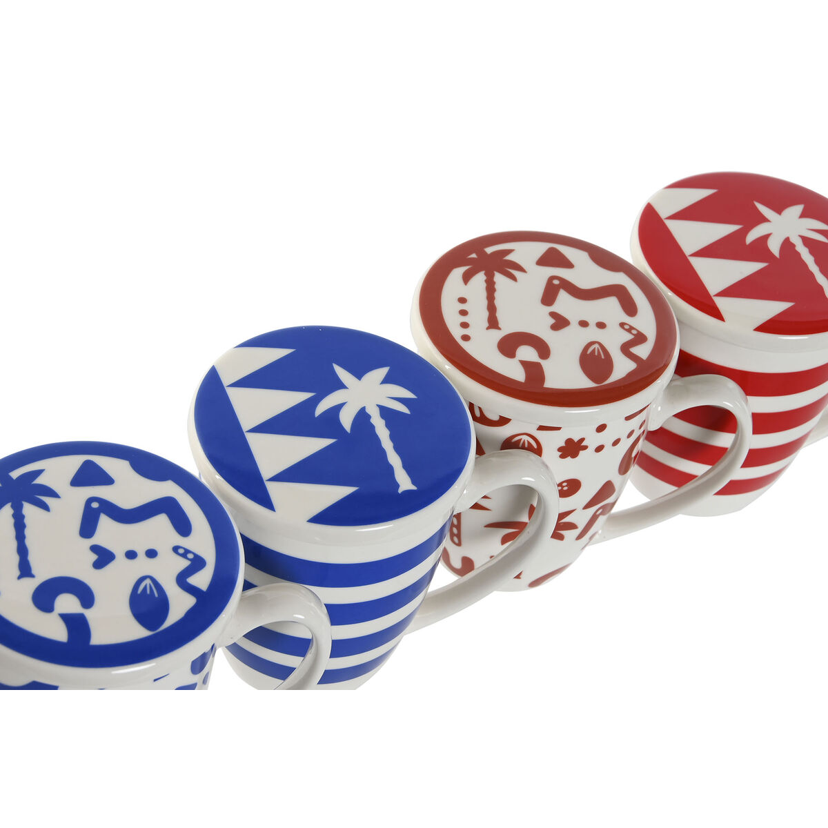 Cup with Tea Filter Home ESPRIT Blue Red Stainless steel Porcelain 380 ml (4 Units)